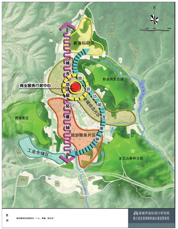 陵川縣位于太行山南麓,生態(tài)環(huán)境良好,風(fēng)光秀美,景色宜人。規(guī)劃提出了以旅游和中藥材為支柱產(chǎn)業(yè),完善道路交通及區(qū)域基礎(chǔ)設(shè)施的服務(wù)能力,積極發(fā)展旅游三產(chǎn)服務(wù)業(yè)的發(fā)展思路。確定了“休閑度假生態(tài)旅游型服務(wù)城市”的城市性質(zhì),以生態(tài)為基礎(chǔ),以旅游服務(wù)為特色,不貪大求洋,重在品質(zhì)提升,打造“小而精”的太行山地城市。在建設(shè)中要體現(xiàn)自然和諧、生態(tài)宜居的精致縣城發(fā)展思路,打造“山環(huán)城、城依嶺、居隨勢、樓掩翠、水潤川”的特色景觀風(fēng)貌。